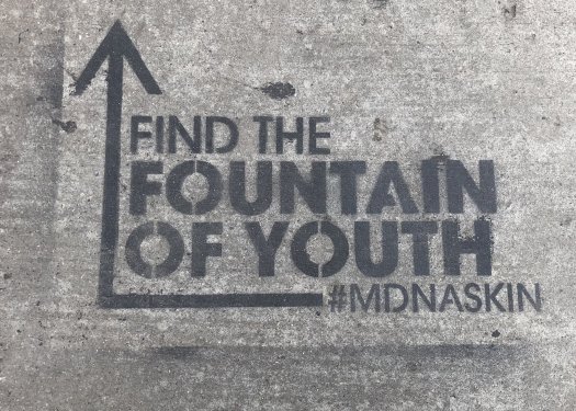 As I strolled the streets of Chelsea one chilly Saturday morning, I noticed a sidewalk ad – literally, stenciled on the sidewalk. Huh, I though, gorilla marketing takes a twist.
