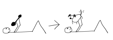 Use a 10-15 lb dog for toning. To build muscle mass, choose a 20-50 lb dog. On a flat back with bent knees, position one hand on the ribs and one hand mid-belly. Repeat 3 sets of 15 reps. Stretch in between by fully extending arms while scratching your dog’s back in reward for being a good boy.