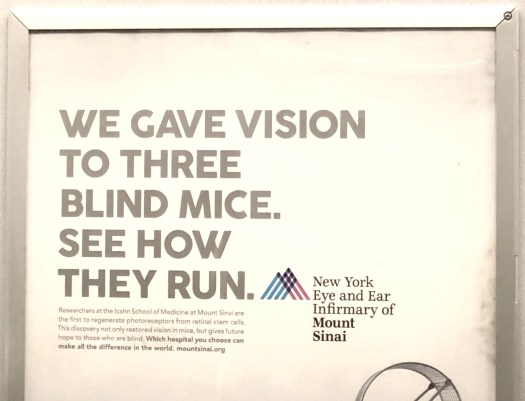 This winter, while perusing the subway marketing — which offers the longest impression a marketer can hope to achieve with New Yorkers these days — I noticed something new on the train walls. It wasn’t an ad for a one-year-old startup offering suitcases for your wanderlust or bed linens for the affordable luxury metropolitan market. It was something else positioned as cutting edge and innovative — the kind of place you’d want to work for or buy from. It wasn’t an ad from a snazzy millennial-run company, but from a hundred-and-seventy-year-old, massive hospital. As large companies are being disrupted by innovative start-ups, large hospitals are finding themselves in the same boat, fighting for market share as their primary path to growth. Now even the old hospital guard has decided to try out some new tricks.
